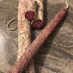 Composition : viande de porc, sel marin, dextrose, saccharose, épices, arômes naturels, antioxydant : E300, conservateur : E252.